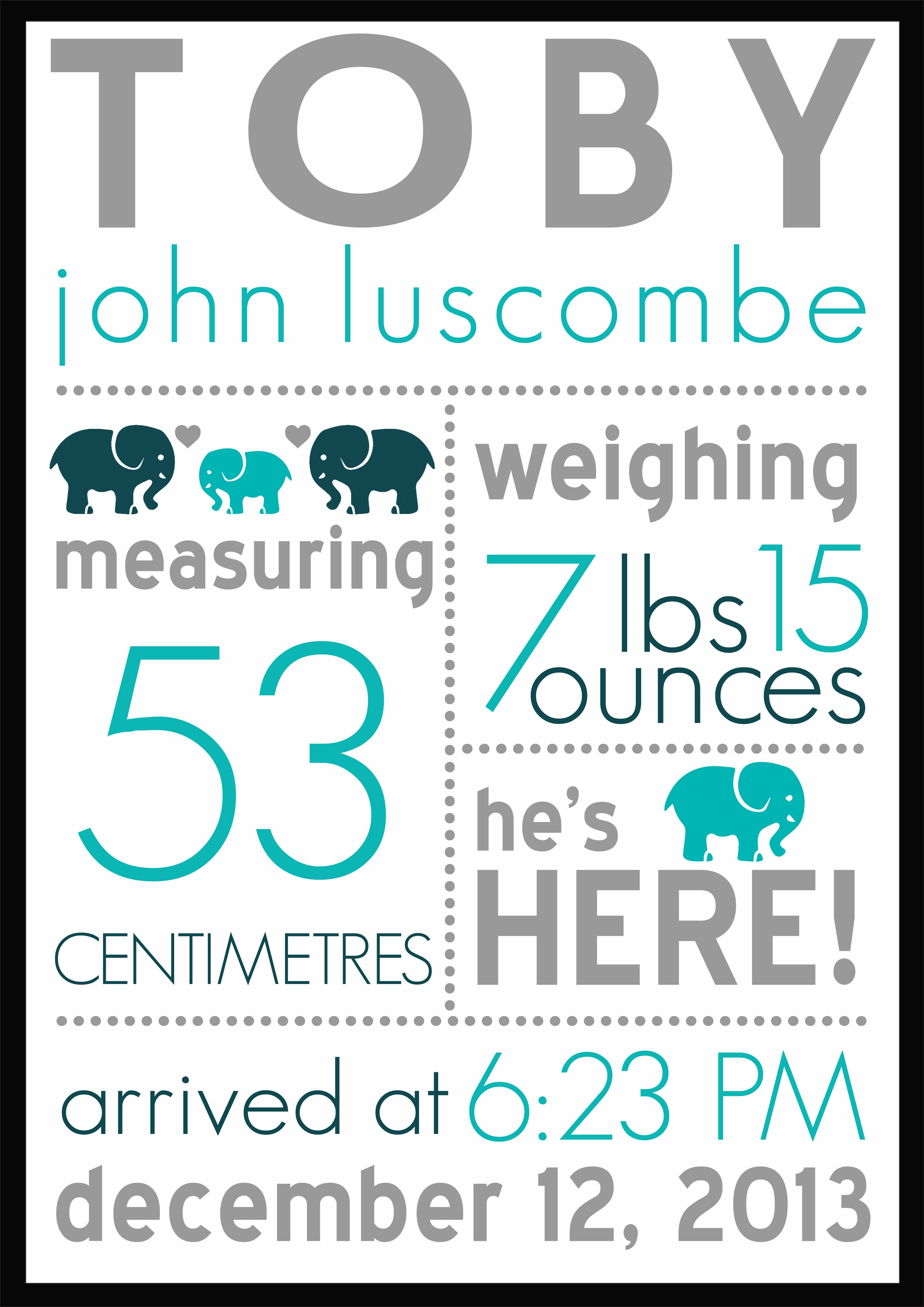 Toby’s Birth Notification Share this: Click to share on X (Opens in new window) X Click to share on Facebook (Opens in new window) Facebook Like Loading... Related