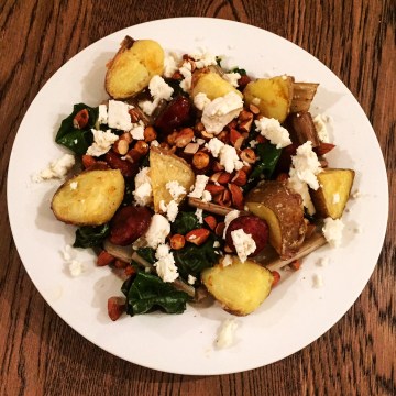 Crispy Roast Potatoes with Chorizo, Chickpeas and Silverbeet